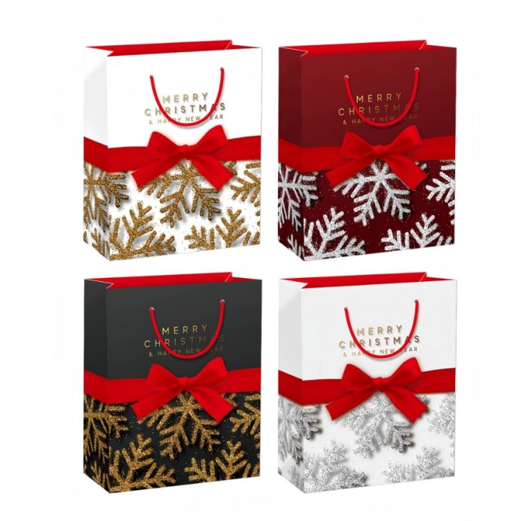 Motiv: mix barev, nápis a červená mašle se stříbrnými, metalickými prvky