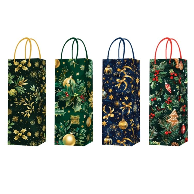 Dárková papírová taška na láhev s vánočním motivem.