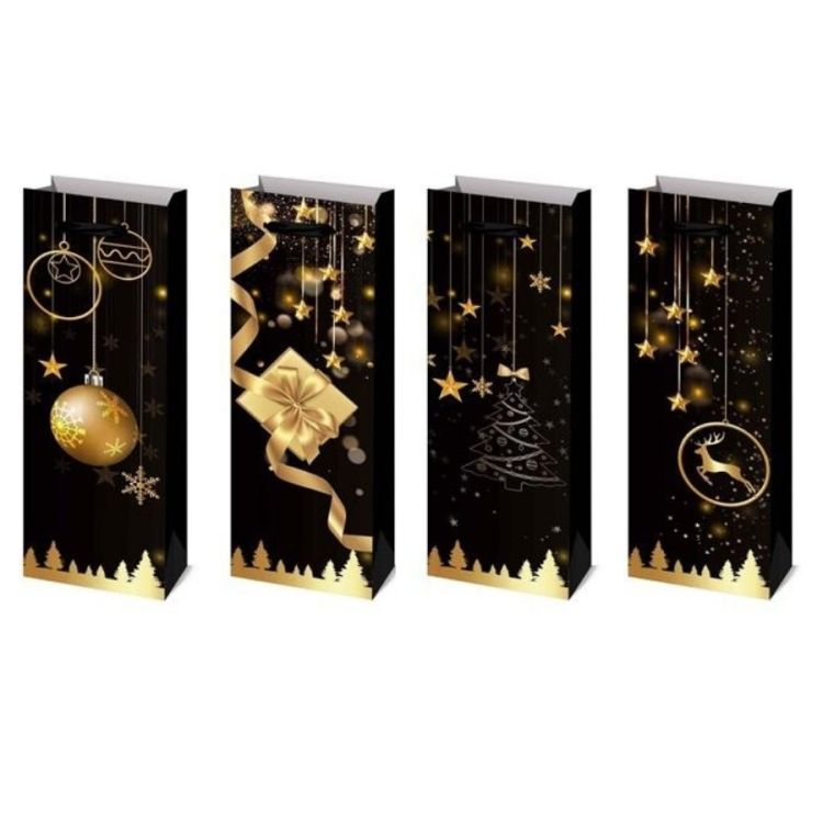 Dárková papírová taška na láhev s vánočním motivem.