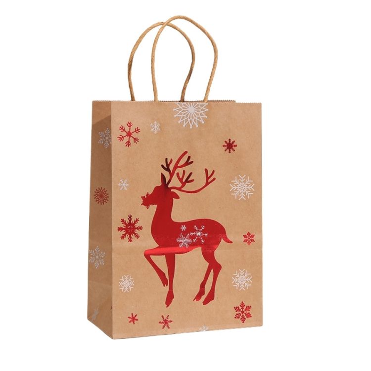 Přírodní dárková taška s vánočním motivem s metalickými prvky.