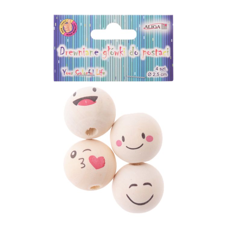Dřevěné hlavičky s obličejem a vlasy pro vytvoření různých postav.