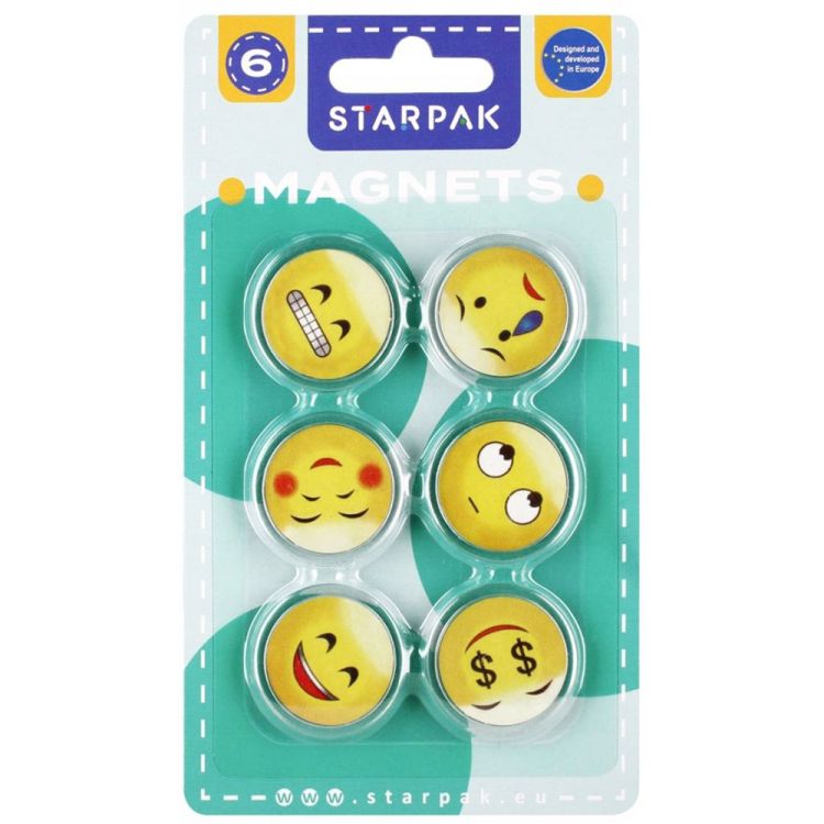 Sada silných magnetů v plastovém pouzdře s motivem Smiley, každý je jiný.