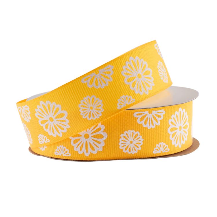 Rypsová stuha s typickým jemným žebrováním, bez drátku s potiskem bílých květin.