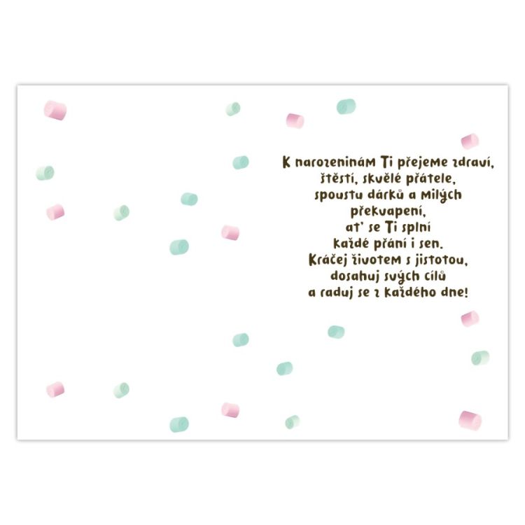 Blahopřání obsahuje obálku a vnitřní text viz obrázek.