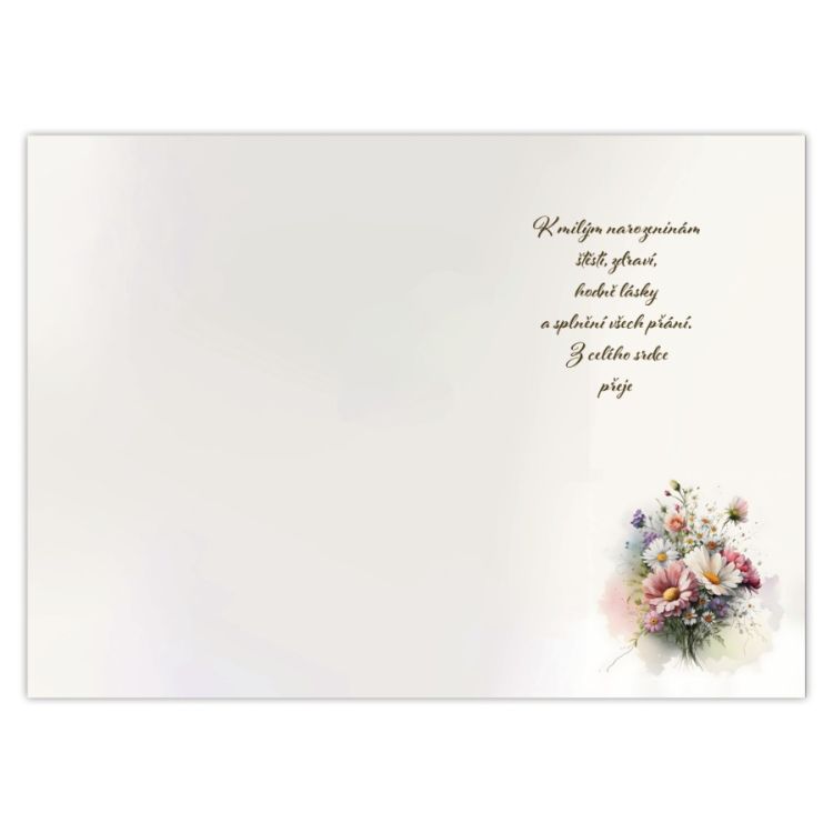 Blahopřání obsahuje obálku a vnitřní text viz obrázek.