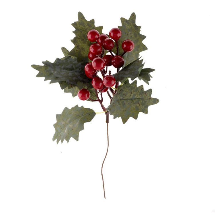 Umělá dekorační přízdoba v podobě větvičky hlohu.