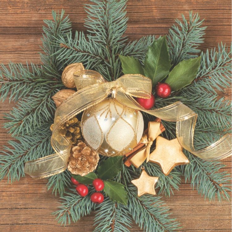 Označení: SDGW015401 Gold Bauble on Spruce Twigs