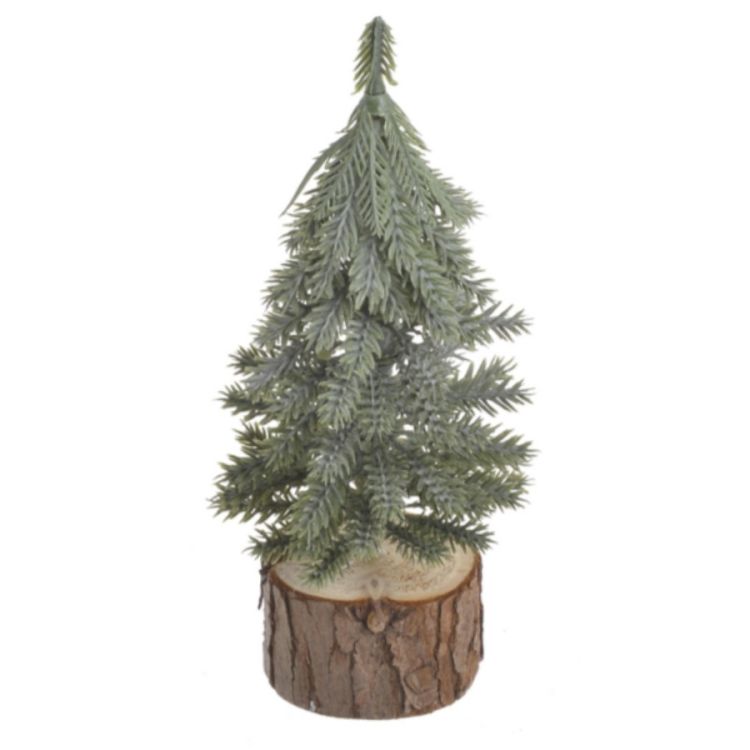 Větvičky jsou plastové. Stromek je zasazen do podstavce z přírodního dřeva, který mu dodá rustikální vzhled.