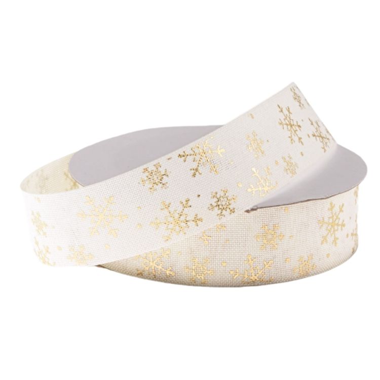 Vánoční bavlněná stuha bez drátku s potiskem.