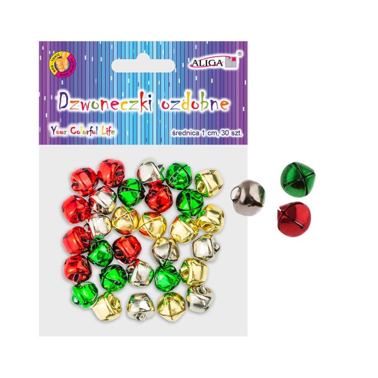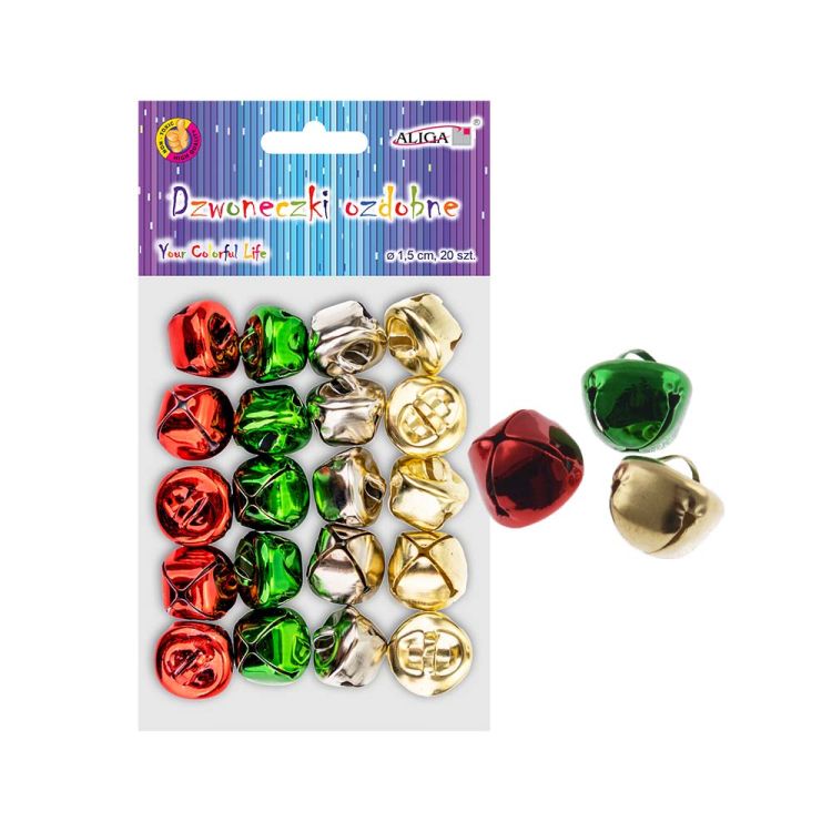 Dekorativní rolničky ve vánoční barevné kombinaci.