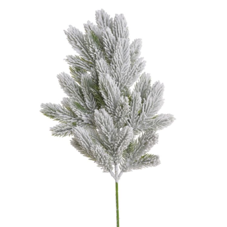 Krásná zasněžená umělá smrková větvička, která může být vystavena samostatně nebo bude pěknou ozdobou do váz, truhlíků a jako přízdoba k jiným dekoracím.