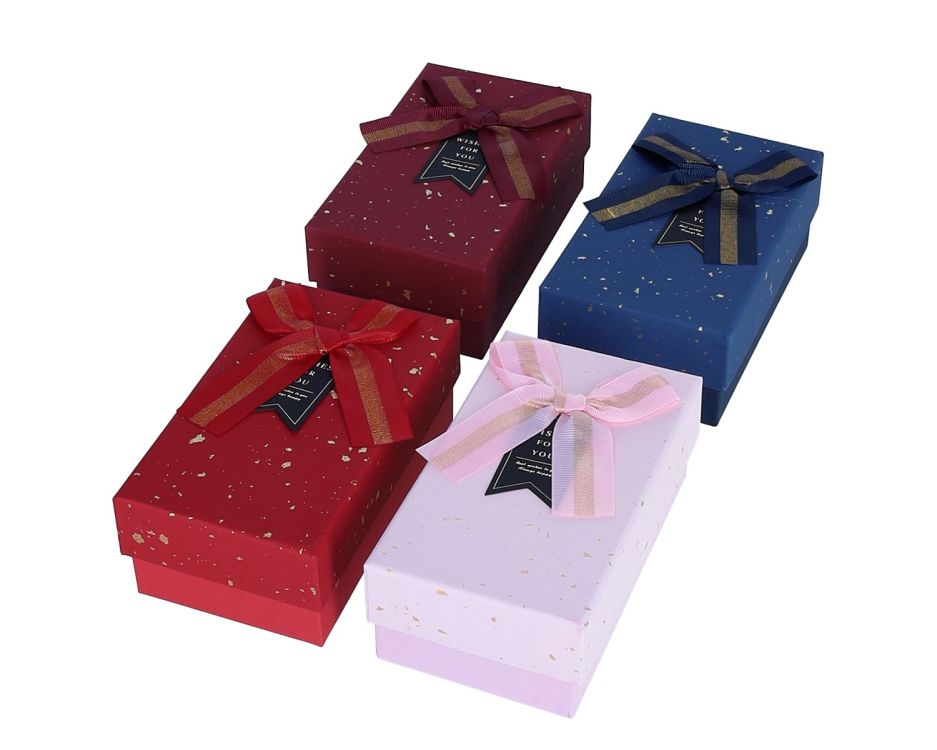 Krabičky jsou v různých barvách, víka jsou s různými vzory s metalickými prvky.