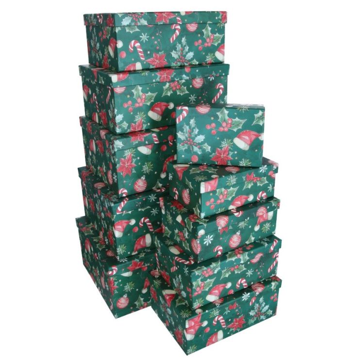 Velikost krabiček: 36,5x26,5x10,8cm, 34,5x24,5x9,8cm, 32,5x23x8,8cm, 28,5x20,5x7,8cm, 27x19x7,3cm, 24x17x6,7cm, 21,5x15,5x6,3cm, 18,5x13x5,8cm, 16,5x11,5x5,3cm, 14x9,5x4,8cm.