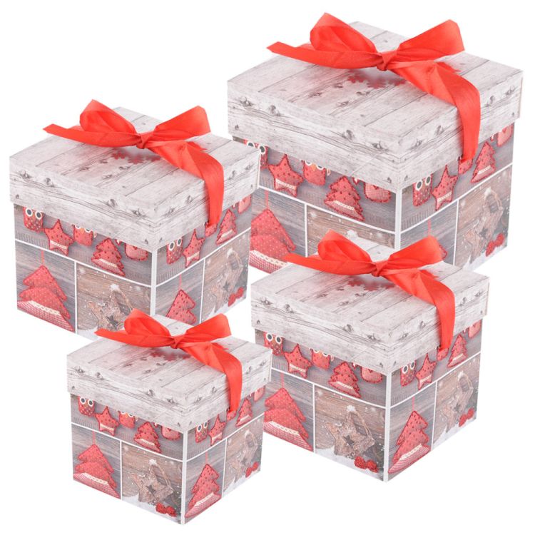 Rozměry složené krabičky: 25x25x25cm, 20x20x20cm, 15x15x15cm, 10,7x10,7x10,7cm