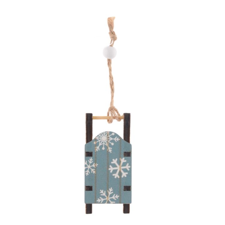 Dekorace k zavěšení - Sáně s potiskem vloček.