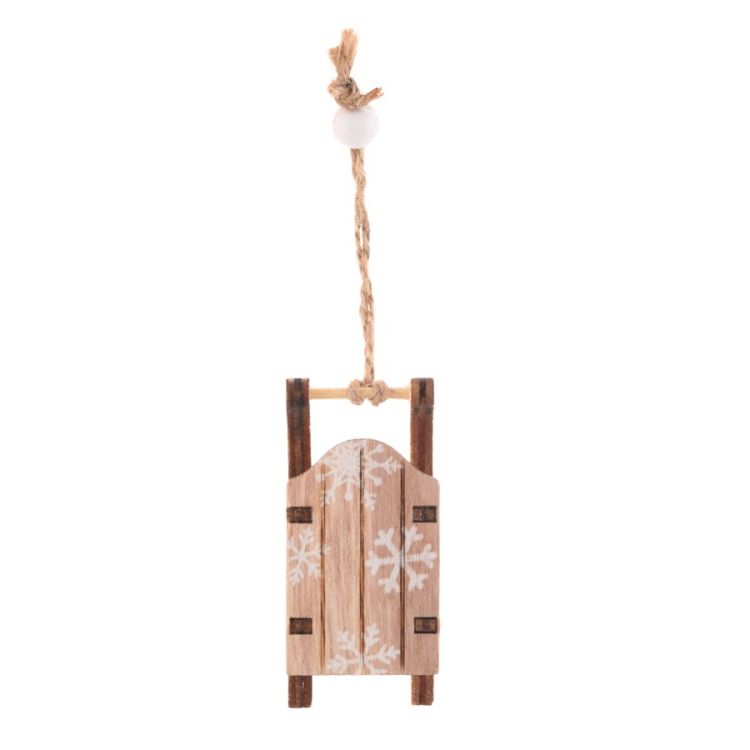 Dekorace k zavěšení - Sáně s potiskem vloček.